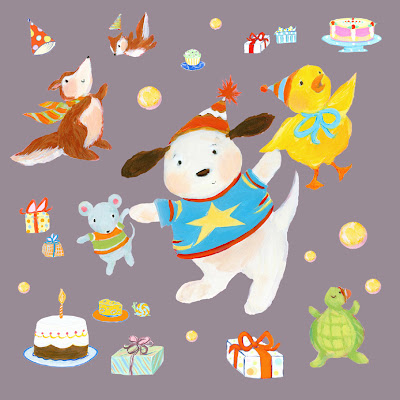 Below is Jumpin' for Joy, a design for gift wrap, cards, napkins, etc. I recently had a fabric sample printed by Spoonflower They do great work!